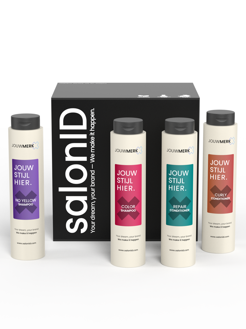 SalonID Combipack Shampoo & Conditioner – stel zelf jouw ideale mix van 12 producten samen. Kies de combinatie die het beste past bij jouw salon en klanten. Creëer je eigen merkcollectie met premium haarverzorgingsproducten, volledig afgestemd op jouw wensen